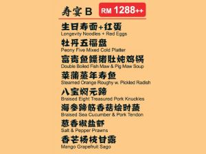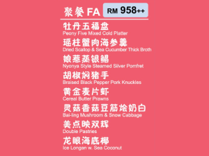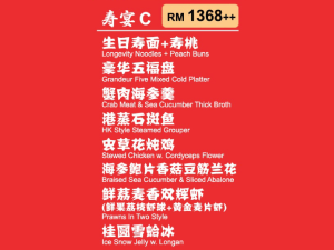寿宴 A RM998.00 Add to cart 寿宴 B RM1,288.00 Add to cart 寿宴 C RM1,368.00 Add to cart 寿宴 D RM1,688.00 Add to cart 聚餐 FA RM958.00 Add to cart 聚餐 FB RM1,158.00 Add to cart 聚餐 FC RM1,268.00 Add to cart 聚餐 FD RM1,568.00 Add to cart