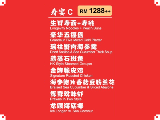 1. 寿宴配套只供 10 位享用 (For 10 pax only)